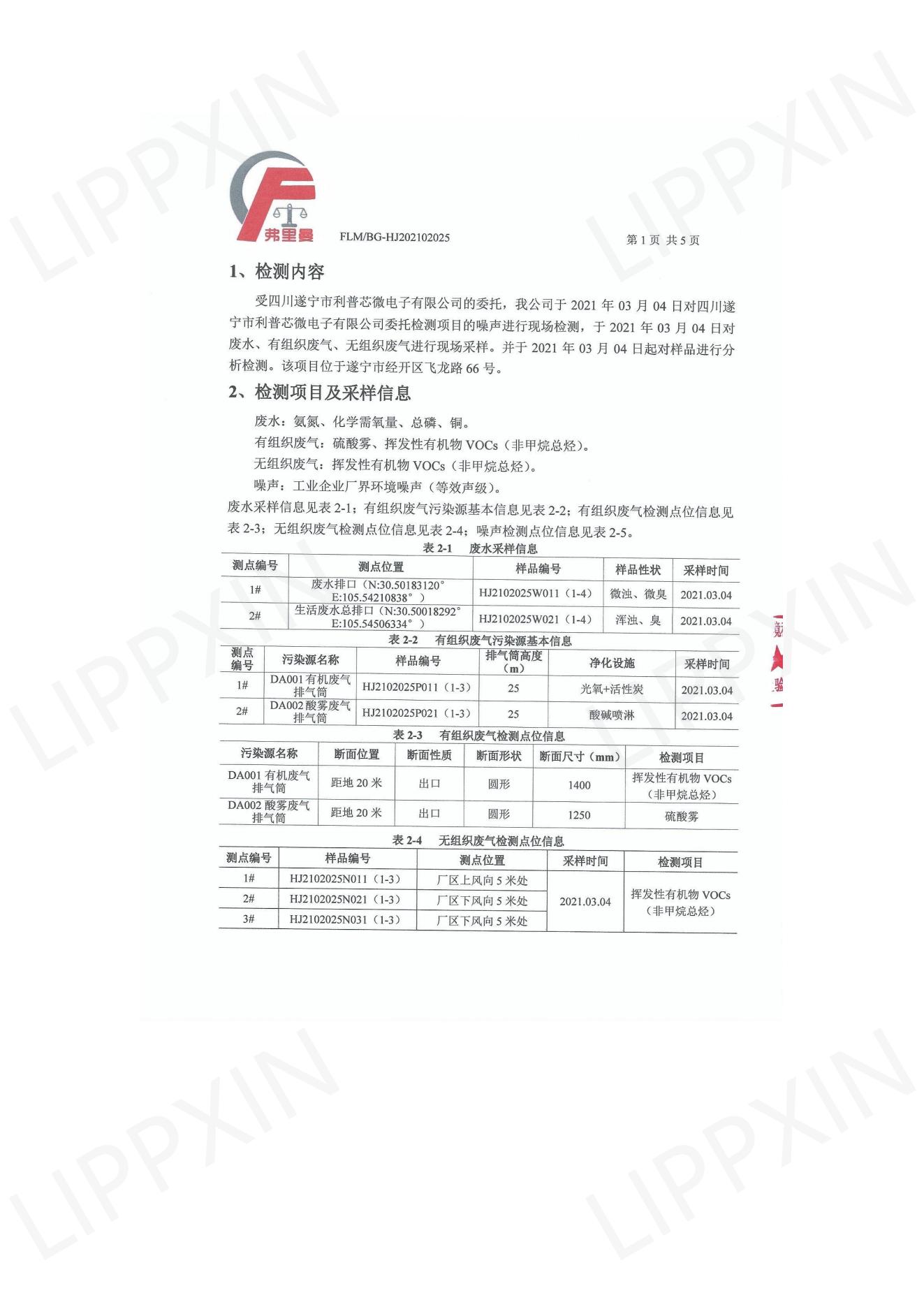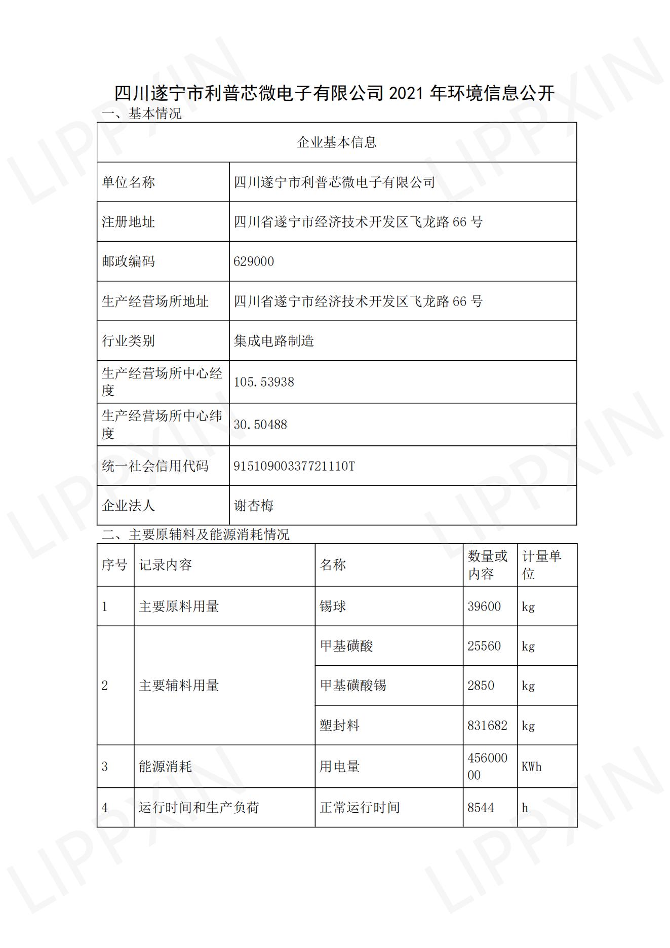 四川遂寧市利普芯微電子有限公司2021年環(huán)境信息公開(kāi)